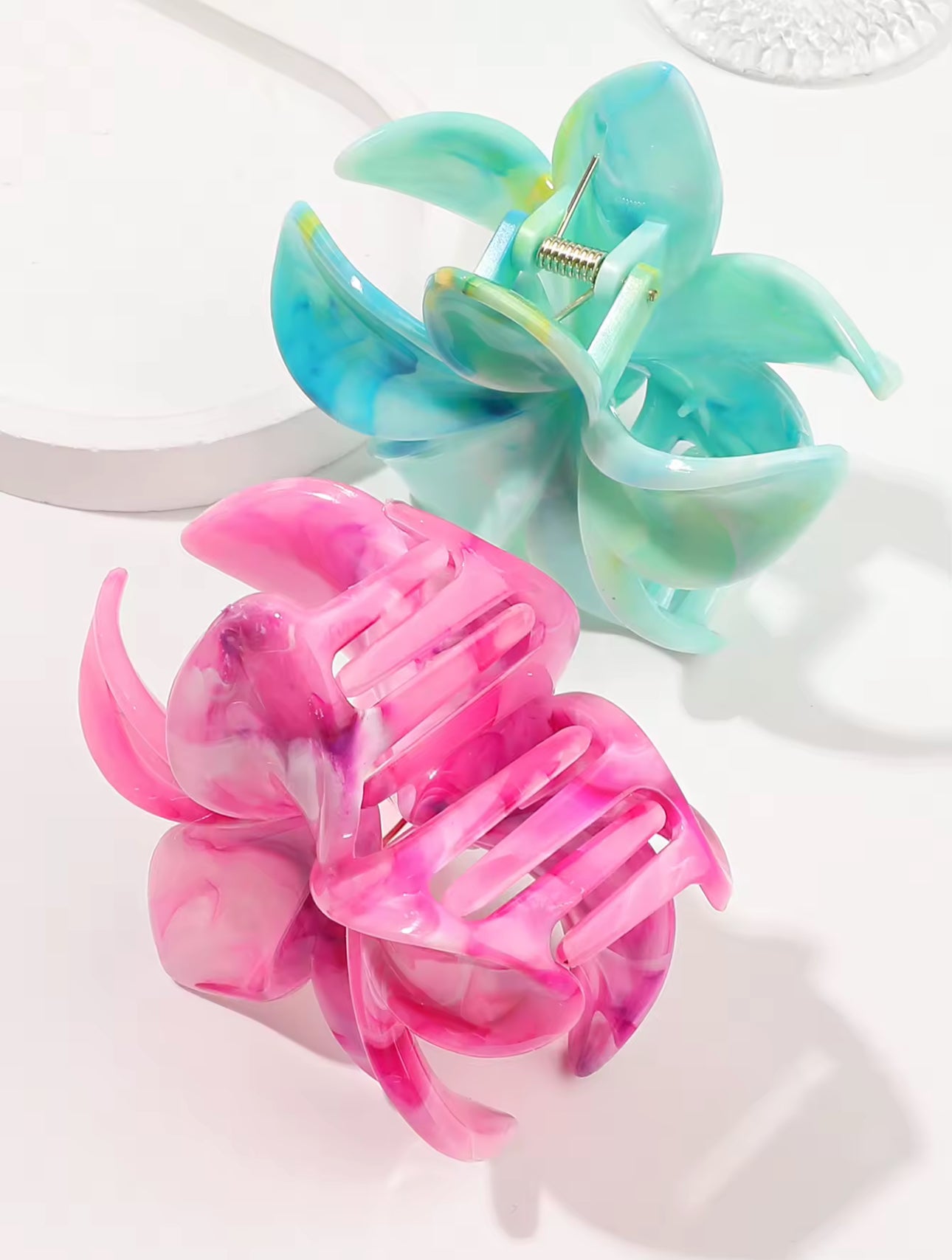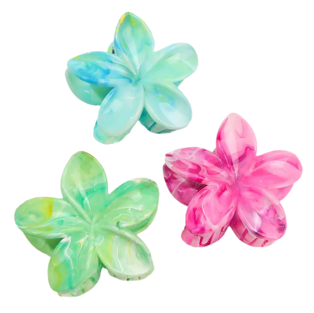 Bring a splash of color and charm to your hairstyle with these playful Bloom Hair Clips. Designed in the shape of delicate flowers with a glossy marbled finish, these clips are perfect for holding your hair in place while adding a fun, tropical vibe to your look. Lightweight yet secure, they’re ideal for everyday wear, beach days, or summer parties.