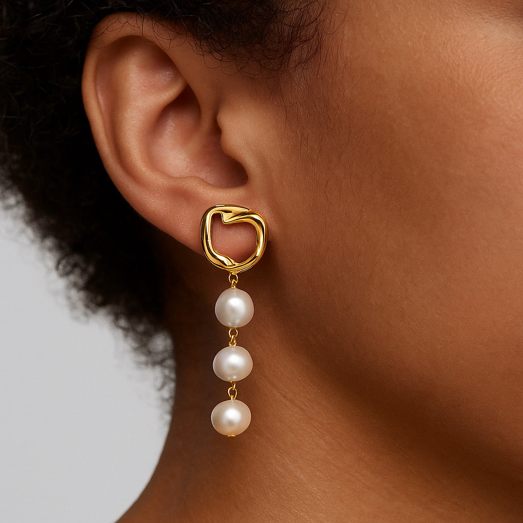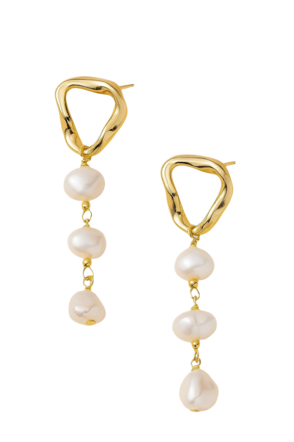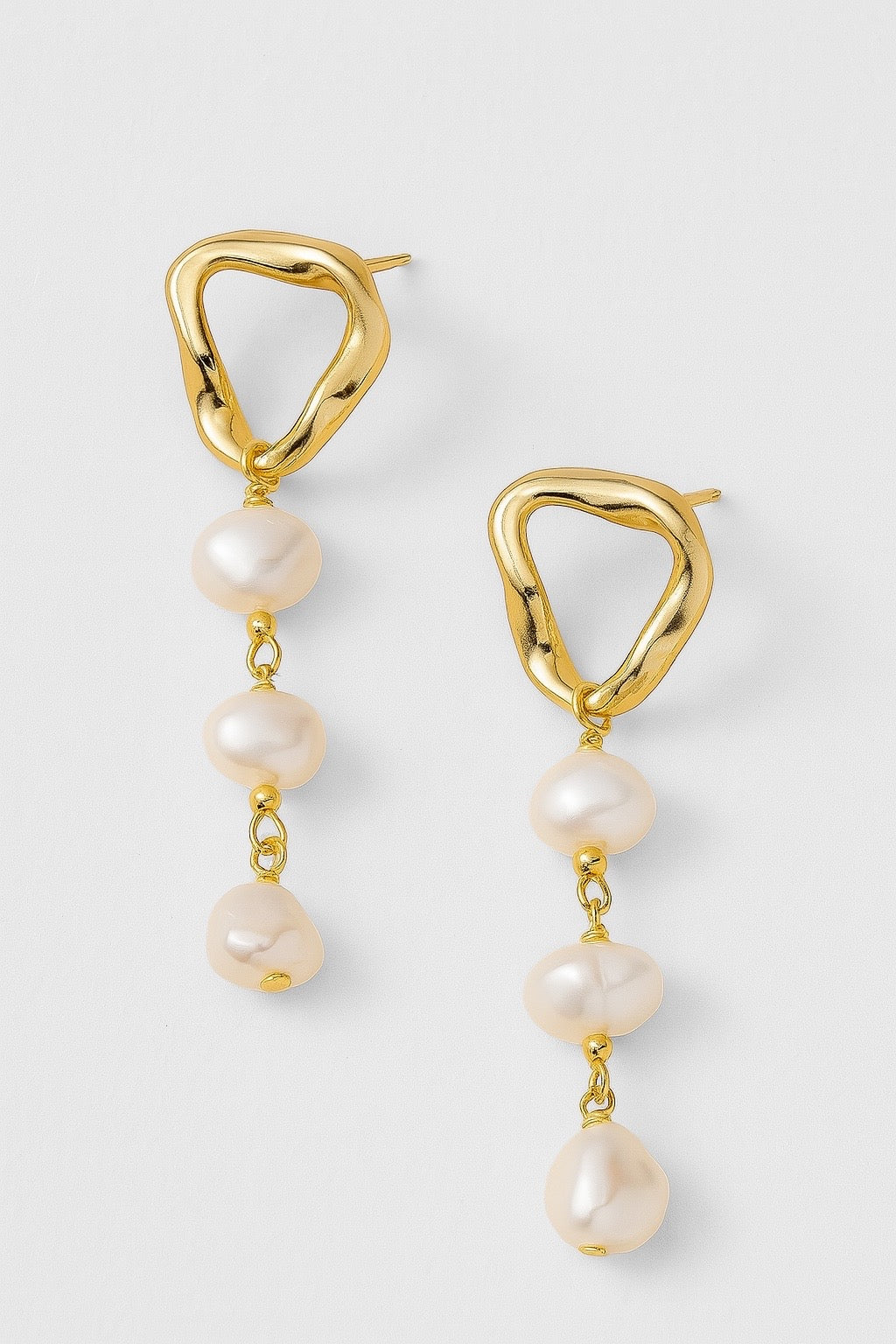 Elevate your look with the effortless elegance of the Ivy Pearl Drop Earrings. These stunning earrings feature an organically shaped gold-plated stud crafted from 925 sterling silver, flowing into a delicate cascade of three natural freshwater pearls. The perfect blend of modern art and timeless charm.